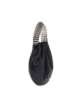 AYLA BAG - BLACK SOFT NAPPA LEATHER - BLACK DIAMOND STONES - SILVER HARDWARE
