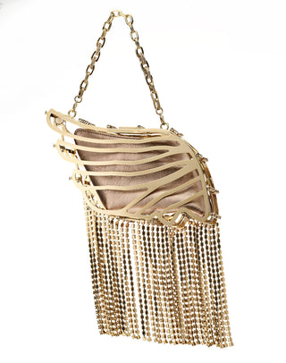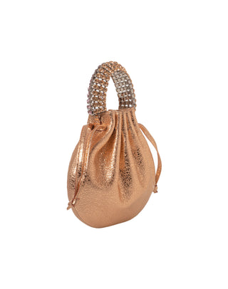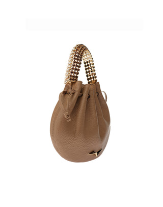 AYLA BAG - LIGHT GOLD SHIMMER CALF LEATHER - BLACK & SMOKED TOPAZ STONES - GOLD HARDWARE