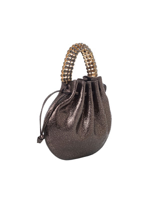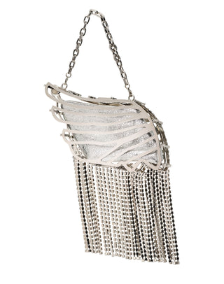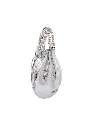 AYLA BAG - SILVER SHIMMER CALF LEATHER - SILVER CRYSTAL STONES - SILVER HARDWARE