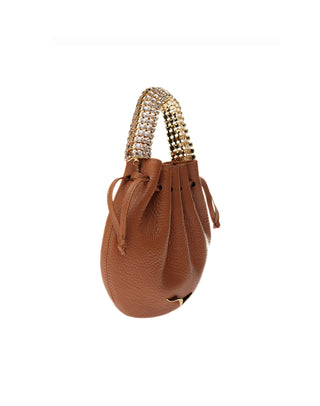 AYLA BAG - HAVANE CALF LEATHER - GOLD QUARTZ & SMOKED TOPAZ STONES - GOLD HARDWARE