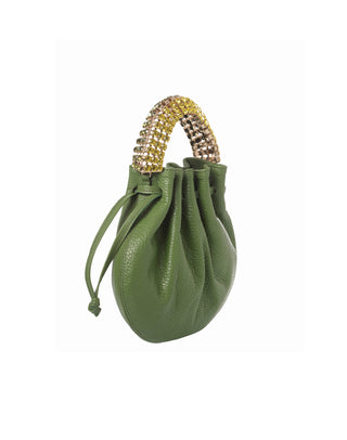 AYLA BAG - GREEN GRASS CALF LEATHER - GREEN OLIVE & YELLOW CITRINE STONES - GOLD HARDWARE