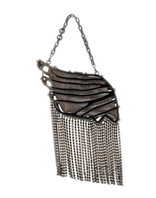 AYLA BAG - DARK SILVER SOFT NAPPA LEATHER - BLACK DIAMOND STONES - SILVER HARDWARE